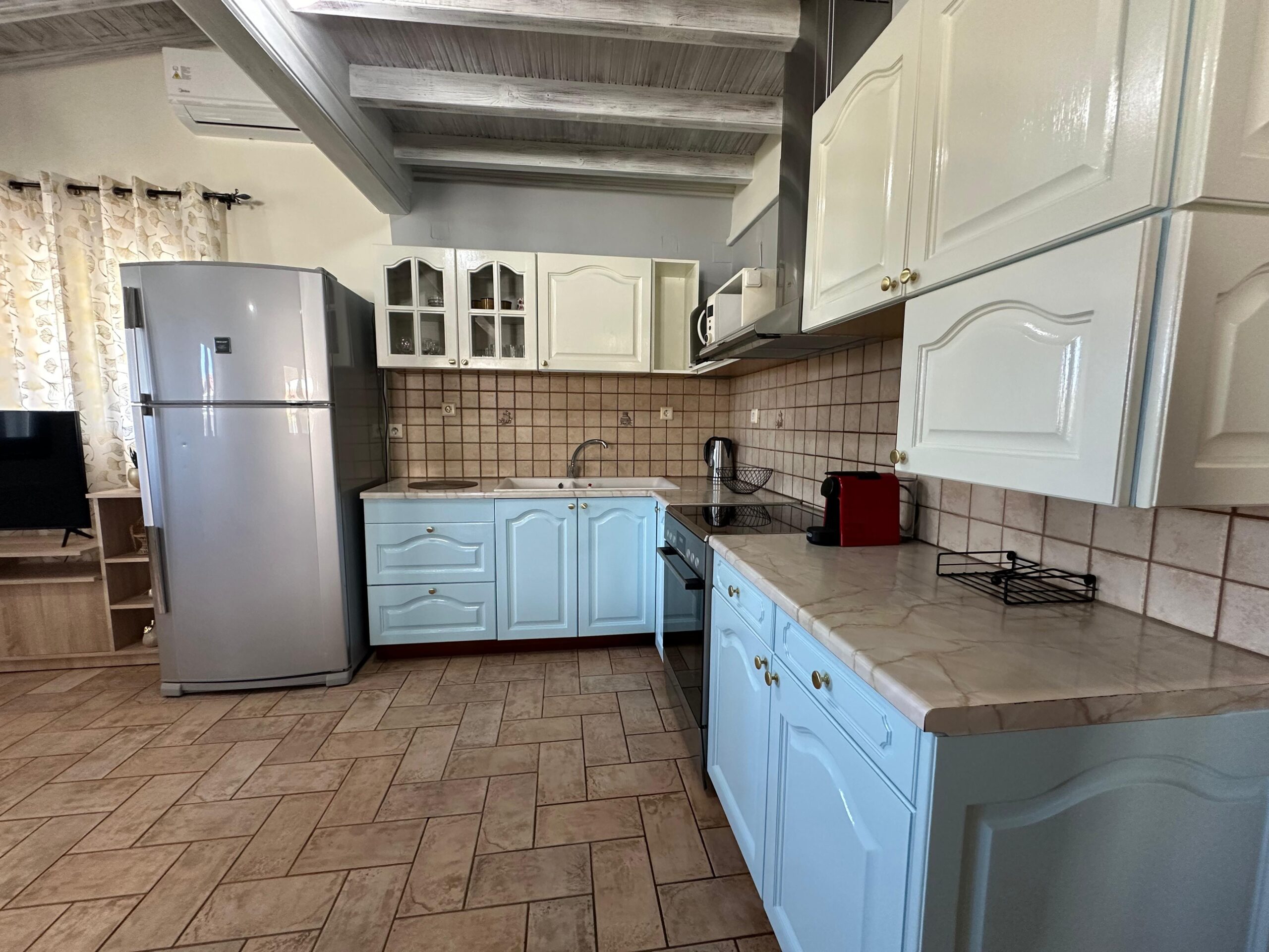 Casa Mare is a renovated house located only 150 meters away from the beautiful Agios Ioannis Beach. You can enjoy the natural beauty of the landscape, the quiet environment to have moments of relaxation . Also it has a big outdoor space for easy parking. It’s located only 5 minutes from the center of the town. The house can accommodate 5 guests. It has 3 bedrooms , the one has 2 single beds and the other two 1 double bed on each other and 1 bathroom . Fully equipped kitchen to prepare your meals. Free wifi, free parking.